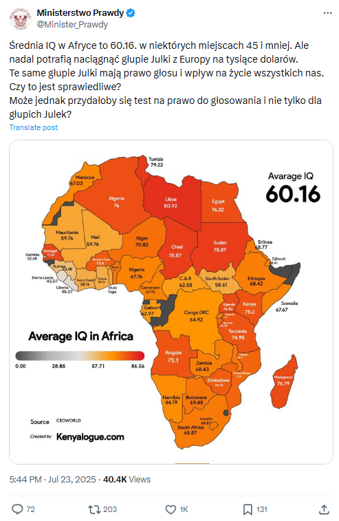 O komentarz w tej sprawie poprosiliśmy prof. Łukasza Albańskiego – badacza zajmującego się socjologią edukacji i migracji, autora artykułu Bielszy odcień inteligencji. O różnicach rasowych i etnicznych w kontekście badań nad inteligencją. Oto jego odpowiedź: