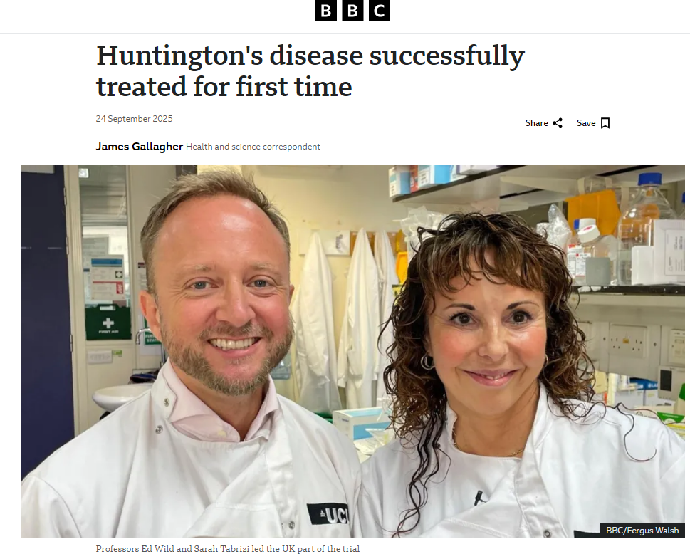- Chorobę Huntingtona po raz pierwszy skutecznie poddano leczeniu