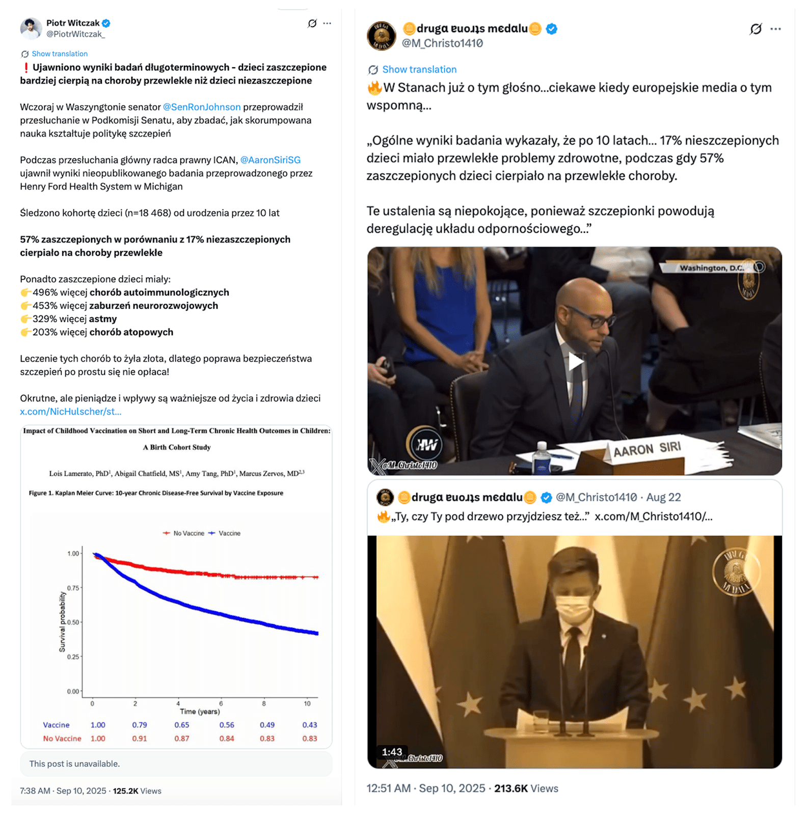 Na początku września 2025 w amerykańskim Kongresie odbyło się przesłuchanie zatytułowane „Jak korupcja nauki wpłynęła na postrzeganie i politykę dotyczącą szczepionek” (How the Corruption of Science Has Impacted Public Perception and Policies Regarding Vaccines), które w dużej mierze składało się z debaty na temat nieopublikowanego badania porównującego przewlekłe choroby u dzieci, które otrzymały szczepionki, z tymi, które ich nie otrzymały.